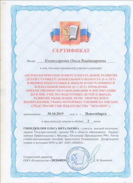 издательство Русское слово. Сертификат . Сохранение условий развития детей при переходе из ДО в НОО
