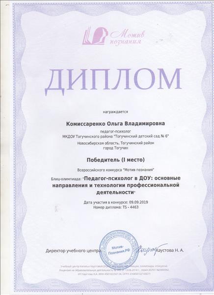 Мотив познания Диплом I место Педагог-психолог в ДОУ: основные направления и технологии в профессиональной деятельности.